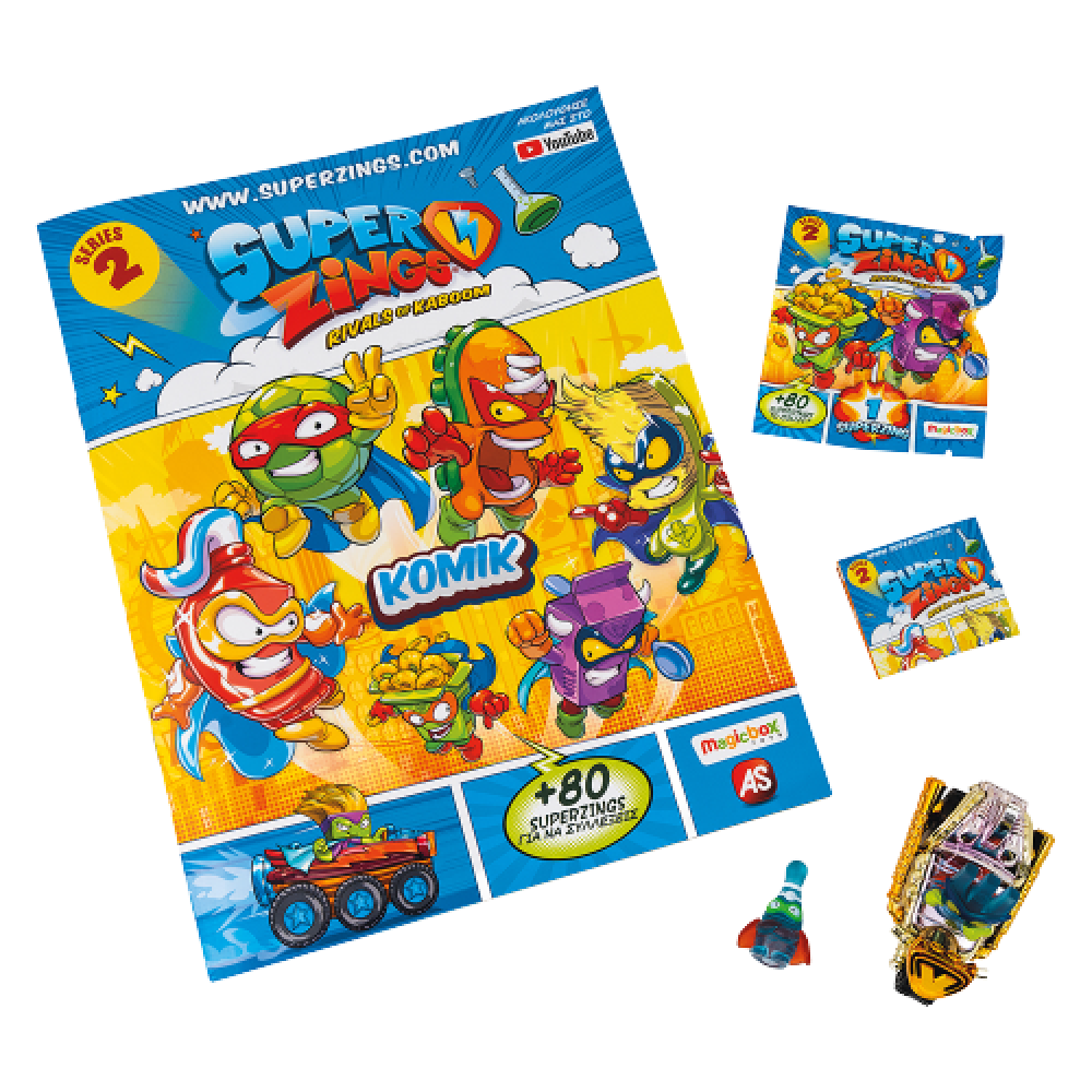 Καθετί κρύβει μέσα του μια υπερδύναμη. Οτιδήποτε μπορεί να γίνει Superzing! Κάθε χαρακτήρας έχει τον αντίπαλό του και όλοι μένουν στην πόλη Kaboom ζώντας απίθανες περιπέτειες. Ανακάλυψε τους χαρακτήρες και τους αντιπάλους μέσα από το Κόμικ! Τι συνέβη στον μυστηριώδης Enigma; Ξεκίνησε σήμερα τη συλλογή σου και ανακάλυψε τα μυστικά της πόλης Kaboom!