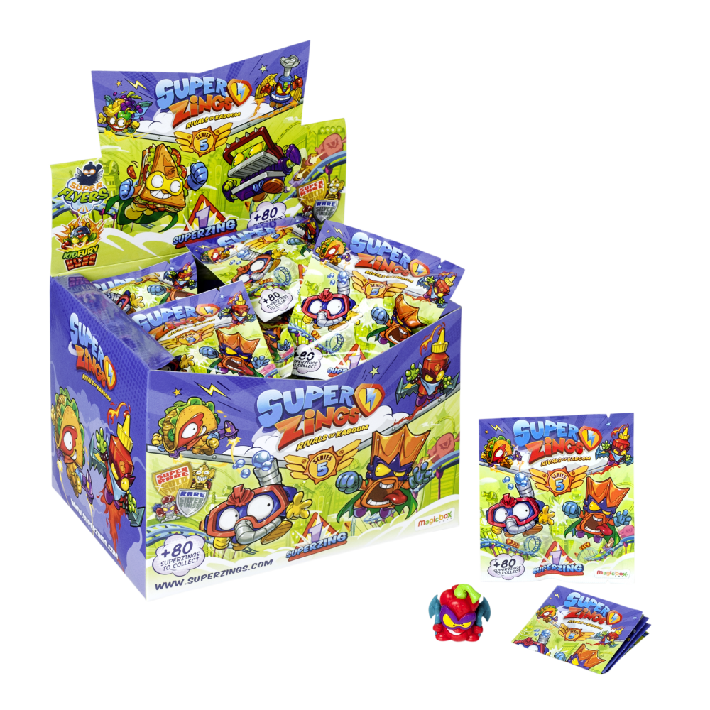 Seria 5 conține peste 80 de figurine noi SuperZings de colecționat! SuperZings sunt obiecte obișnuite din viața de zi cu zi, care se transformă în super eroi și super răufăcători. Fiecare pachet conține un SuperZing și un poster de colectibilitate cu toate figurinele din seria 5. Fiecare SuperZing are un rival: caută perechile rivale și alcătuiește-ți propriile super echipe! Cele 6 super-echipe din orașul Kaboom sunt: Sky Runners, Lightning Raiders, Air Wings, Black Comets, Flying Surfers și Rocket Gang. Găsește cei 6 căpitani de echipă argintii, cei 2 lideri SuperZings de aur...și desigur, pe personajul ultra rar al acestei serii: Kid Fury!